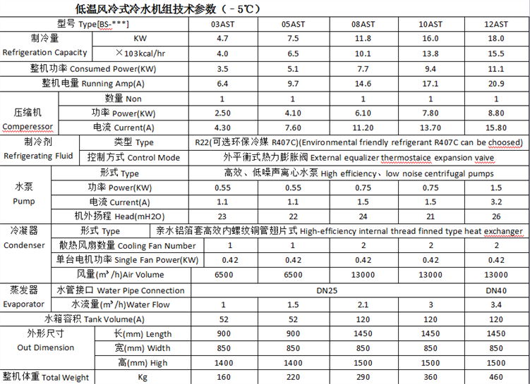 低温冷冻机组风冷式的冷凝器为翅片式,采用双油波纹亲水铝铂,由专业的换热器加工设备制造,具有结构紧凑,体积小体重轻,换热效率高的优点,并配置低转速的大叶轴流风机,可以有效降低运行噪音,减少对周围环境的影响.